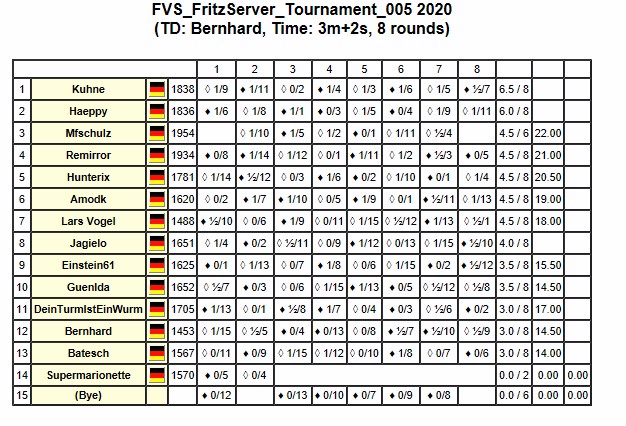 Auf Wunsch von mehreren Teilnehmern des Turniers wird auf die Veröffentlichung der Klarnamen verzichtet.