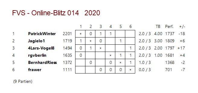 Das 14. Online-Blitz-Turnier der FV Schach e.V. am 22.06.2020.