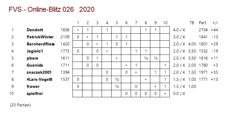 Das 26. Online-Blitz-Turnier der FV Schach e.V. am 28.09.2020.