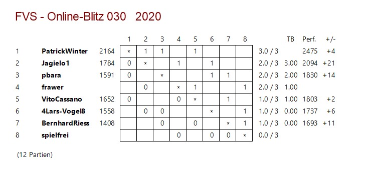 Das 30. Online-Blitz-Turnier der FV Schach e.V. am 26.10.2020.