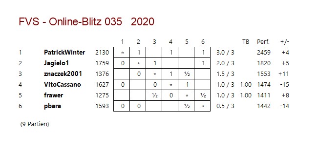 Das 35. Online-Blitz-Turnier der FV Schach e.V. am 07.12.2020.