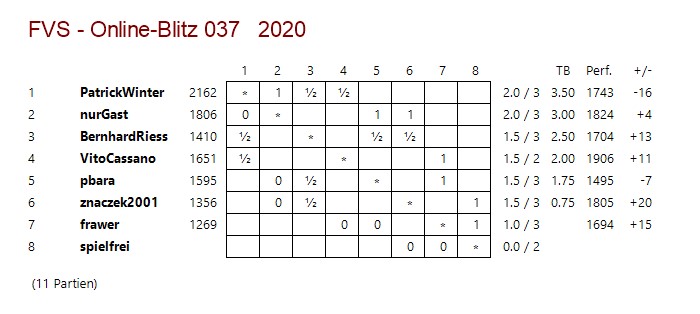 Das 37. Online-Blitz-Turnier der FV Schach e.V. am 21.12.2020.