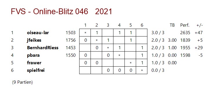 Das 46. Online-Blitz-Turnier der FV Schach e.V. am 22.02.2021.