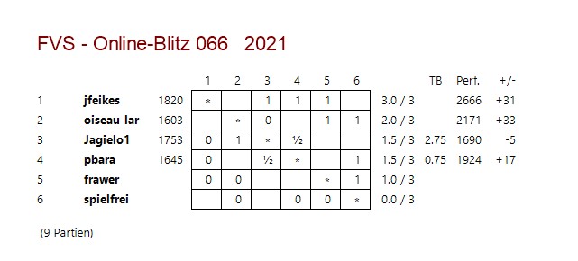 Das 66. Online-Blitz-Turnier der FV Schach e.V. am 06.12.2021.