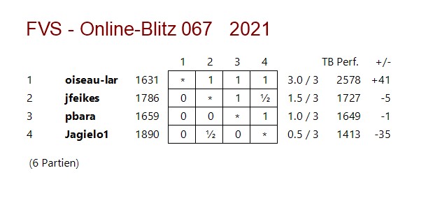 Das 67. Online-Blitz-Turnier der FV Schach e.V. am 13.12.2021.
